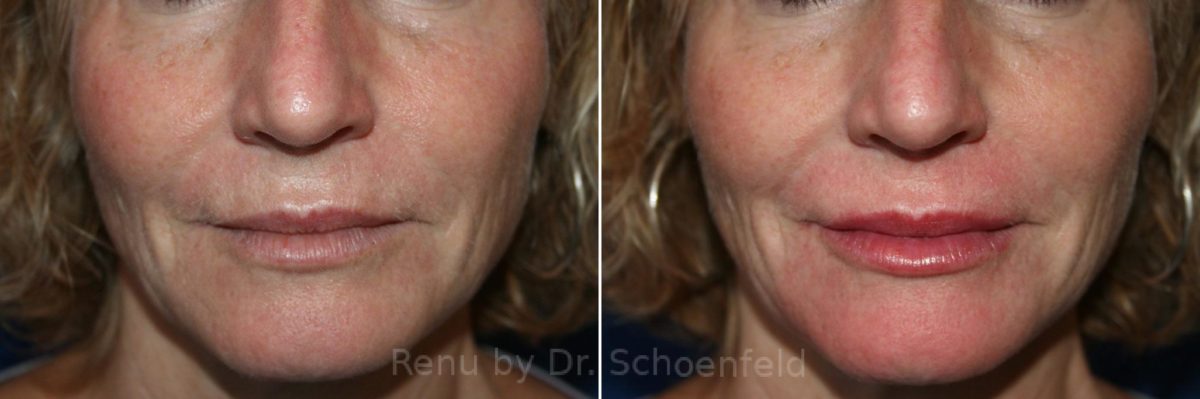 Female patient following lip augmentation and removal of deep vertical wrinkles with juvederm Ultra and Botox injections.