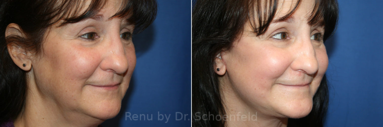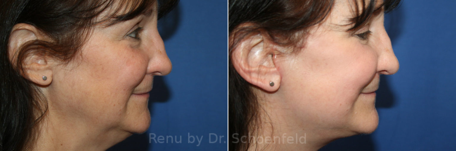 Facelift before and after, lateral right.