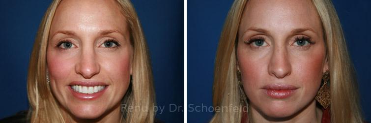Patient underwent Rhinoplasty three years ago and is unhappy with the degree of nasal dorsal concavity on profile and the "inverted V" deformity on frontal view from nasal dorsal and nasal valve collapse. Patient elected for placement of filler rather than undergoing revision rhinoplasty surgery at this time.