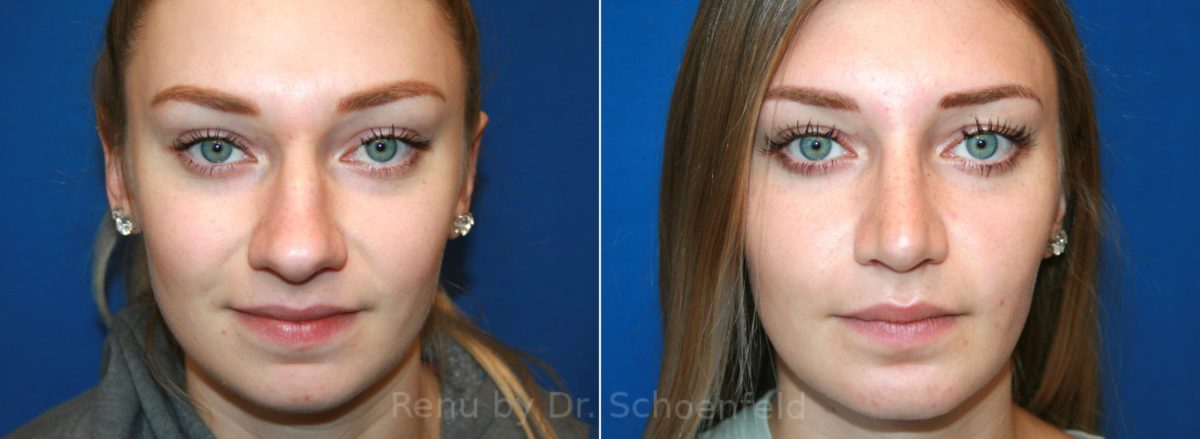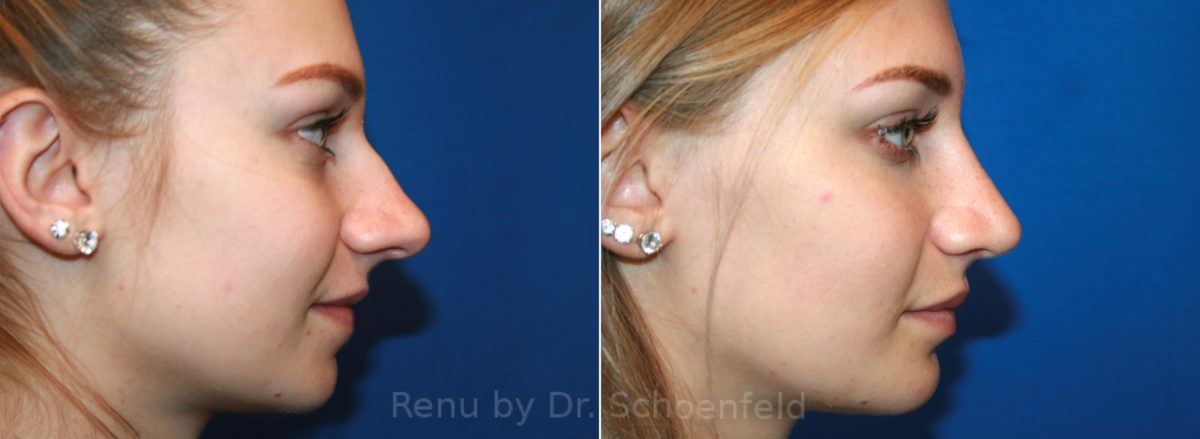 20 year old female who desired refinement to her dorsum and nasal tip. She has very thick skin so reducing the size of the nose needed to be balanced with the fact that if her nose was made too small her tip would appear amorphous and bulbous.
