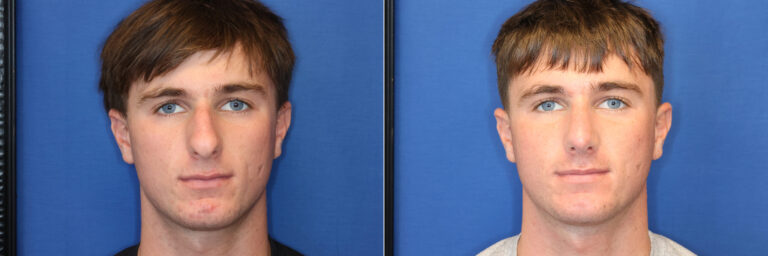 Rhinoplasty before and after, frontal.