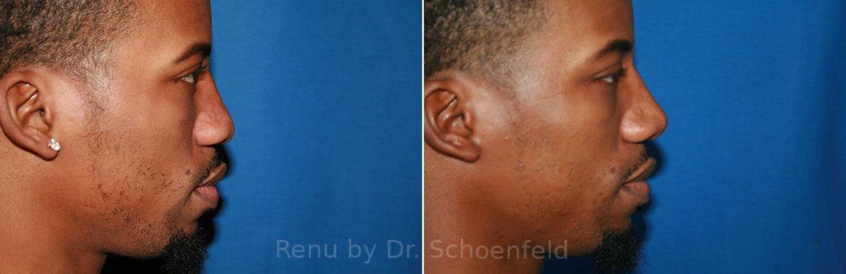 32 year old African American male who desires refinement and strengthening of his nose. Patient had tip grafts, columella grafts, dorsal augmentation, and alar wedge excisions with nostril sill narrowing.