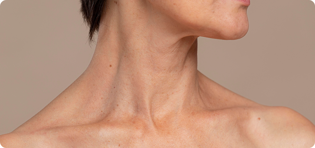 One of the first places to show our age is not the face or hands, but the neck. Vertical banding, full jowls, and the dreaded ‘turkey wattle’ below the chin can add unwanted years onto our appearance. Unfortunately, the delicate tissue of the neck is prone to wrinkles. Years of sun damage, smoking, hormone fluctuations, and weight loss will only accelerate these changes. Hiding behind a turtleneck or scarf is only a temporary fix.