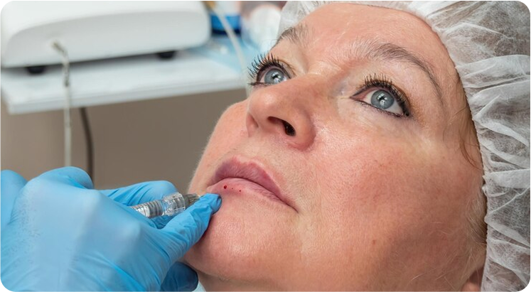Lip injections are a non-surgical cosmetic procedure. After applying numbing cream, a dermal filler is injected into the lips to boost your lip’s size and appearance. Small needles are used to carefully and precisely inject the filler. The procedure is done in our office and takes roughly 15 to 30 minutes.